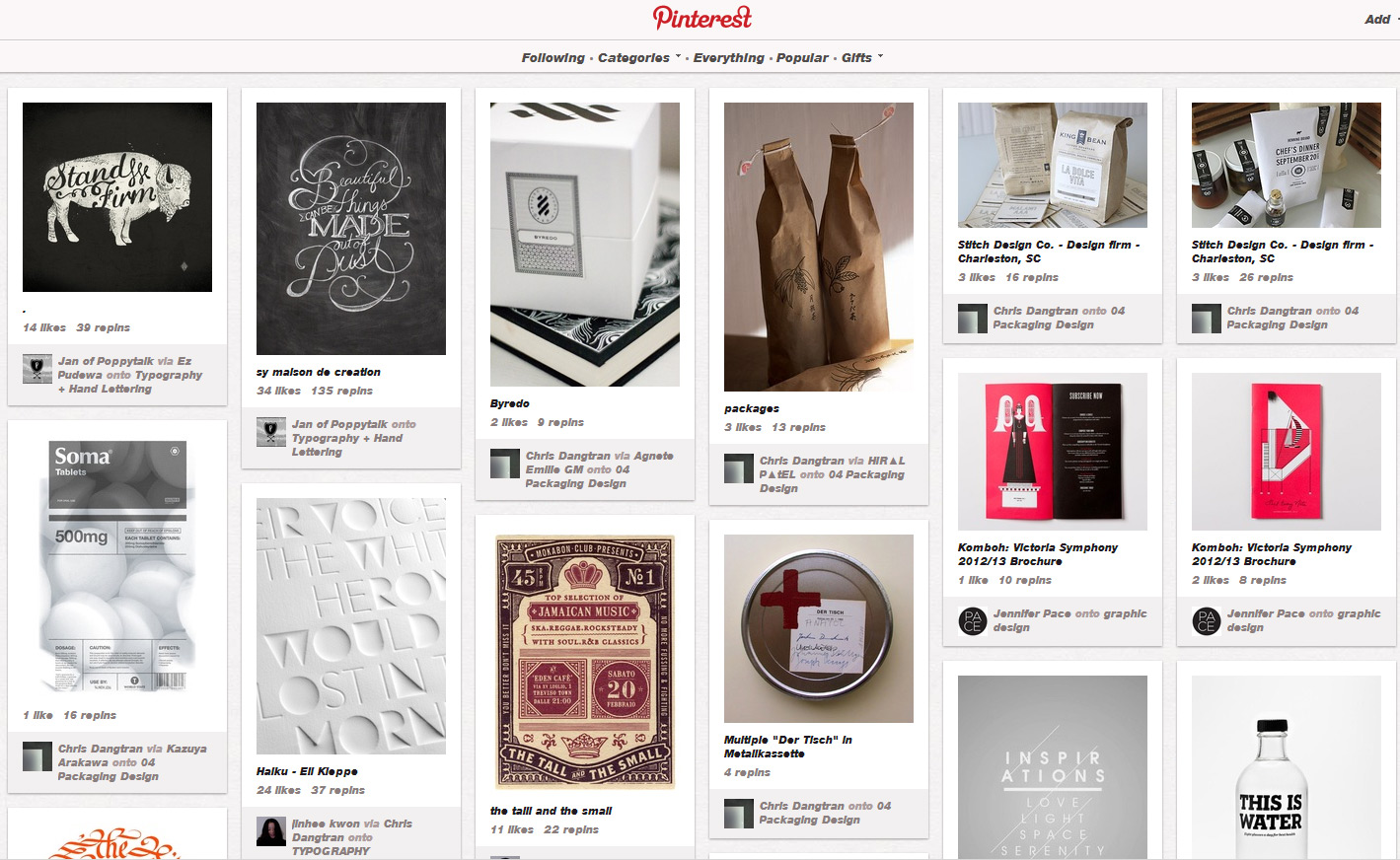 Na atraktivite tejto služby prispieva veľmi jednoduchý a používateľsky prívetivý dizajn. Pinterest triedi nástenky užívateľov do rôznych kategórii, umenie, recepty, interiérový dizajn atď.